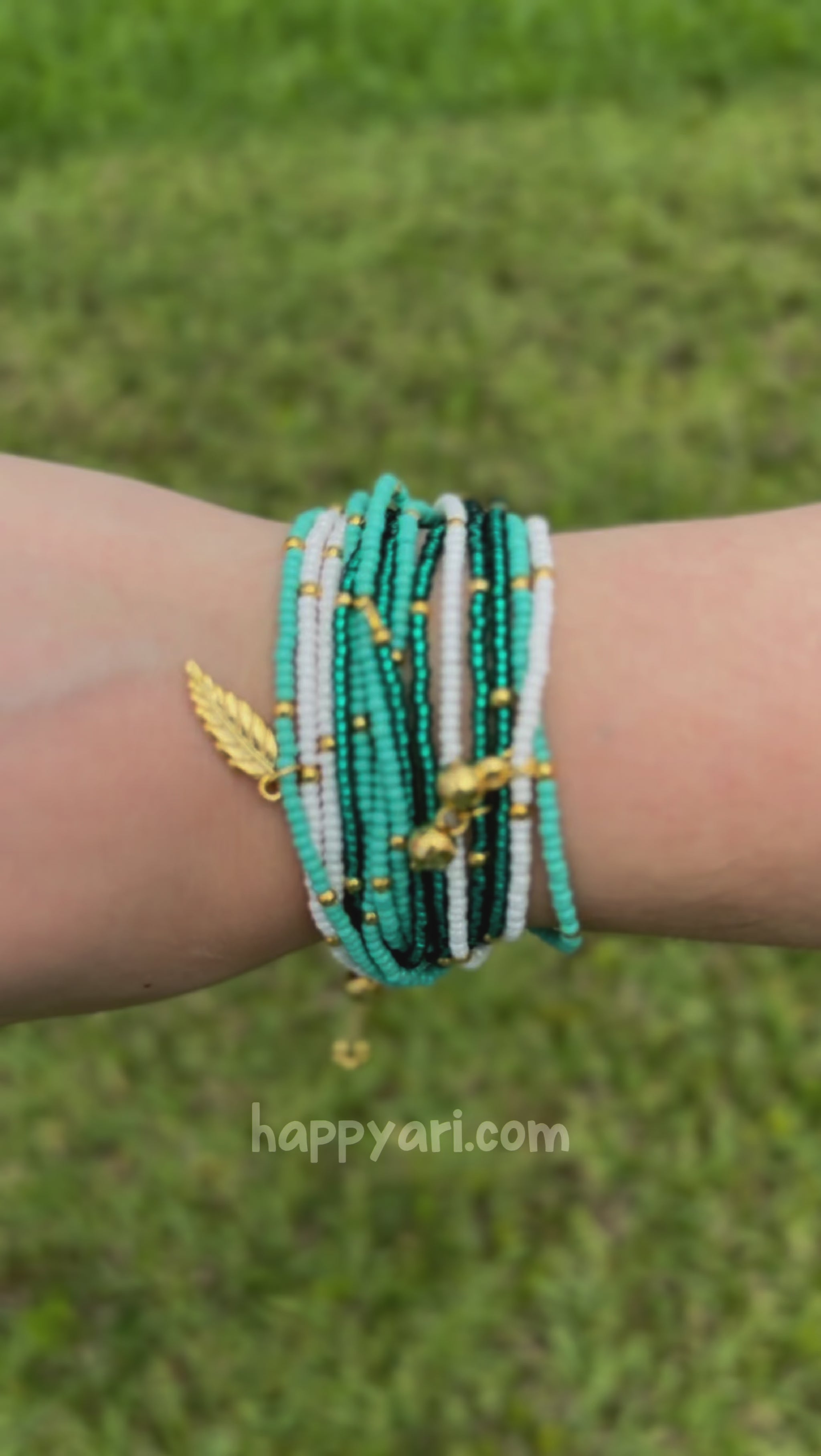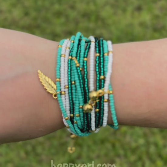 Inspired by ocean waves! Teal and white strands come together into one adjustable bracelet. Easy to wear. Style it up or down for any summer look.